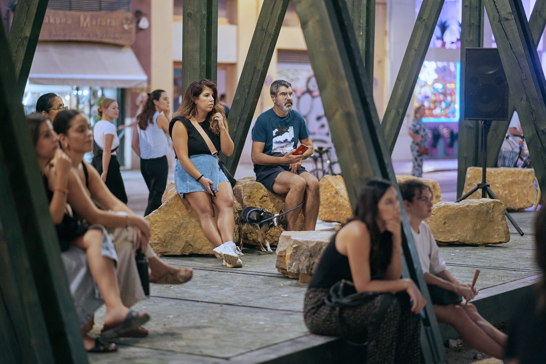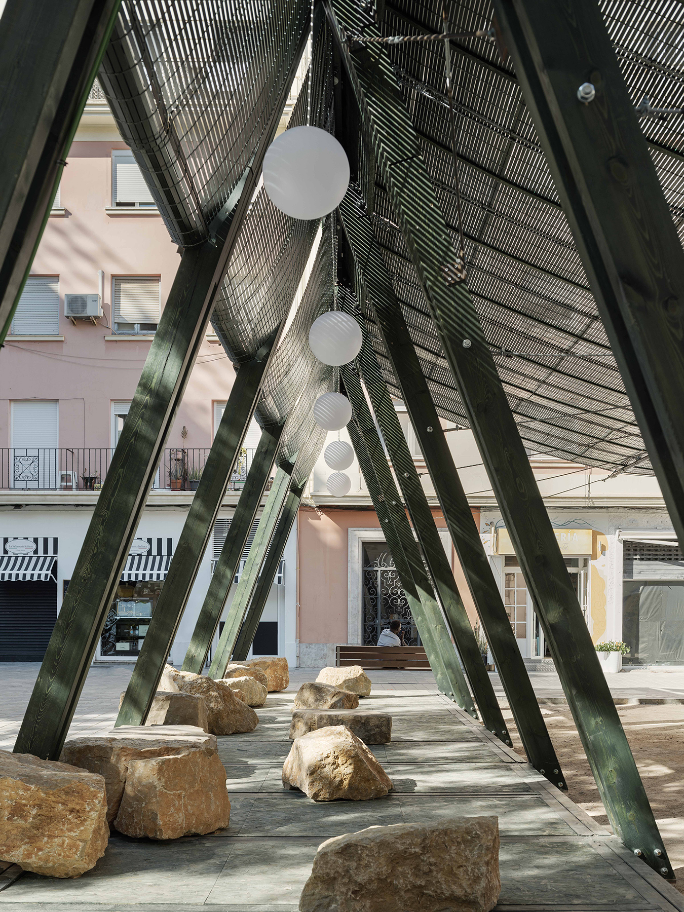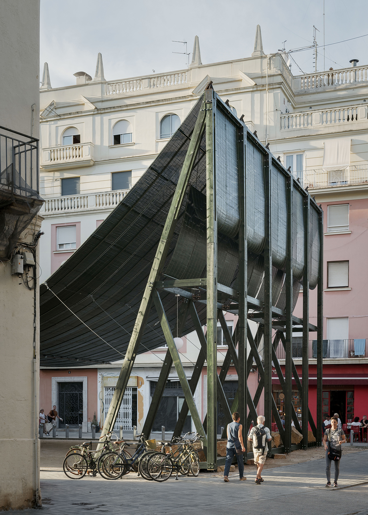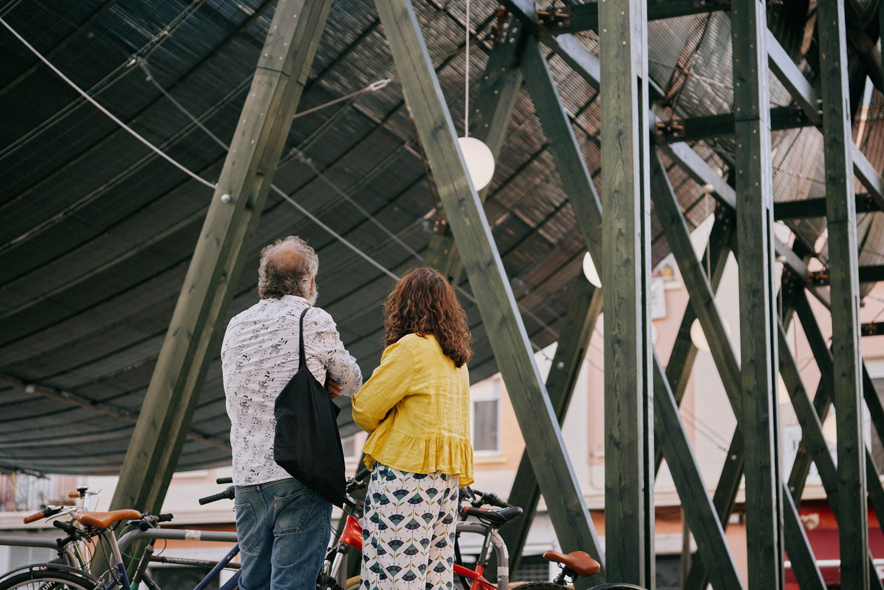 Durante todo un mes, numerosas actividades, eventos, y exposiciones tienen lugar bajo esta gran sombra suspendida en el aire, reactivando la plaza, y devolviéndola a la escena pública.