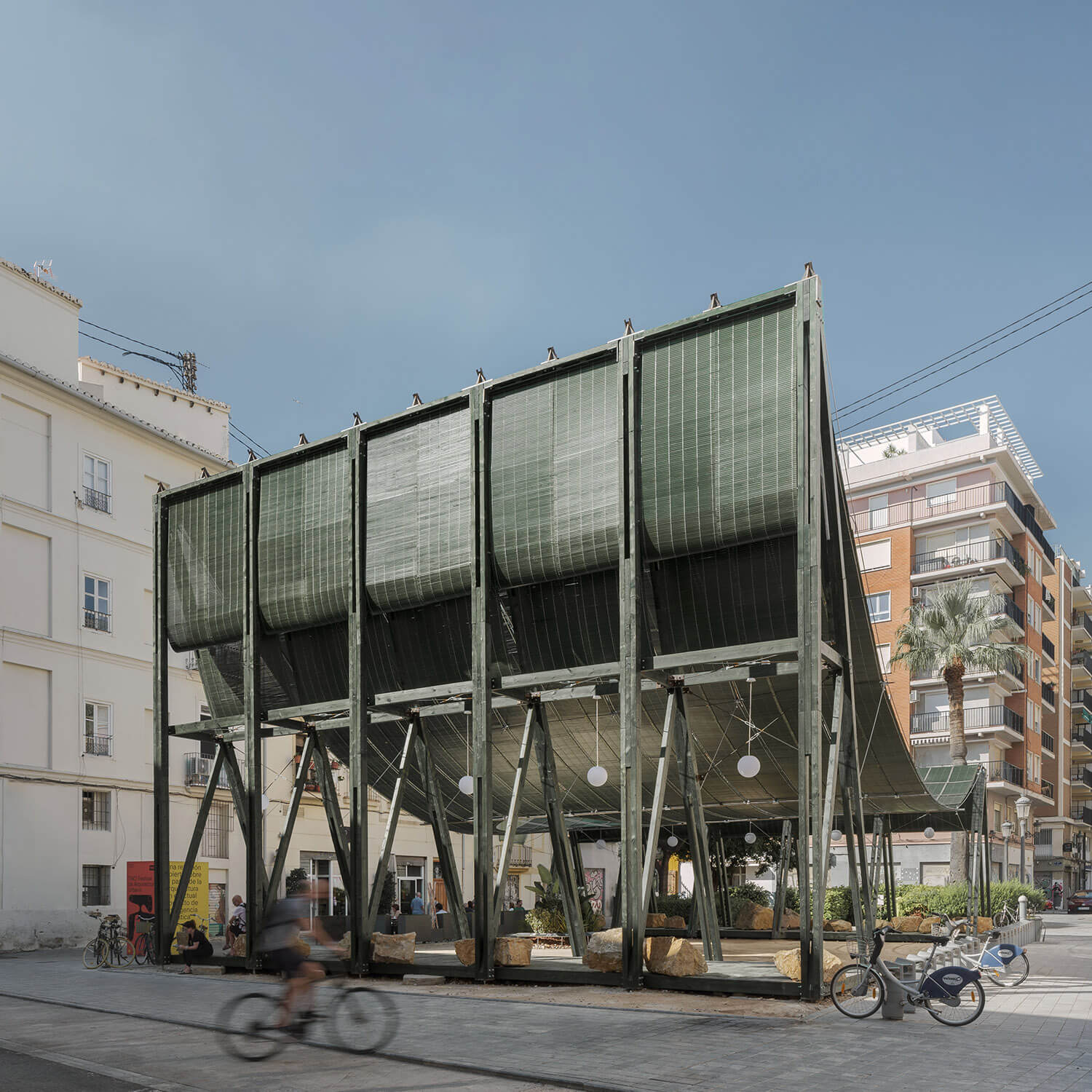 El pabellón, elegido de entre un total de 125 proyectos, se instaló en el corazón del Carmen, el barrio más popular del centro histórico de València, la Ciutat Vella. Se trata de un solar municipal donde antes hubo una manzana de viviendas y unas trazas históricas que perduran en el recuerdo y los planos.